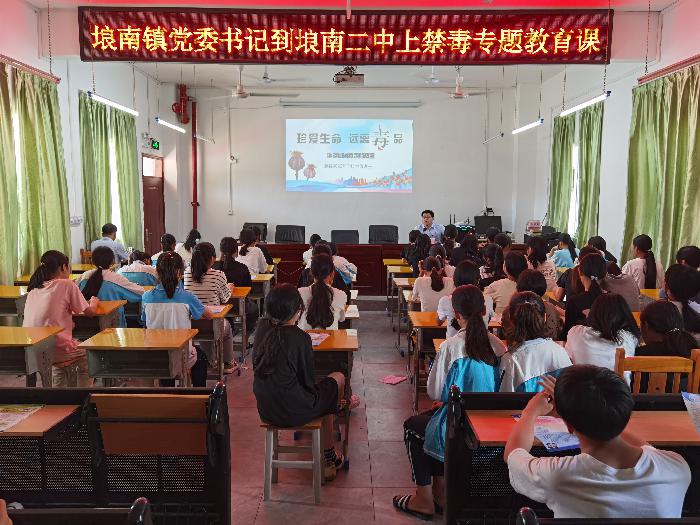 为了巩固和提高青少年识毒、防毒、抵制毒品的意识,为学生营造更好的成长环境和社会氛围。近日,藤县埌南镇党委书记马天宝到埌南二中上禁毒课。