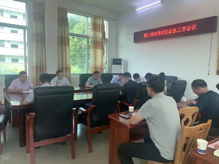疫情如令,责任如山,战“疫”仍在路上。同心镇将继续贯彻落实最新疫情防控阶段要求,从严从紧做好疫情防控各项工作,持续加强摸排,进一步夯实疫情防控网格化管理,扎实筑牢疫情防控坚固防线,全力守护人民群众生命安全。当前,新冠肺炎疫情防控形势严峻,7月18日,同心镇召开疫情防控紧急工作会议,传达贯彻上级关于做好当前疫情防控工作通知精神,并就全镇疫情防控工作进行再安排、再部署。会议由镇党委书记蒙文森主持,镇领导班子成员、挂村干部参加会议。