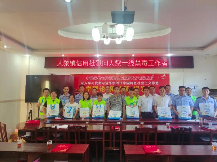 在镇会议室召开“6.26”国际禁毒日座谈会,对大黎镇的禁毒工作进行回顾和分析,鼓励各工作人员和禁毒社工等继续努力把禁毒工作做好,向在禁毒工作中表现突出人员颁发荣誉证书。座谈会后,大黎信用社向大黎镇全体一线禁毒工作者发放慰问品表示慰问,感谢他们为大黎镇禁毒工作作出的辛勤付出和贡献。
