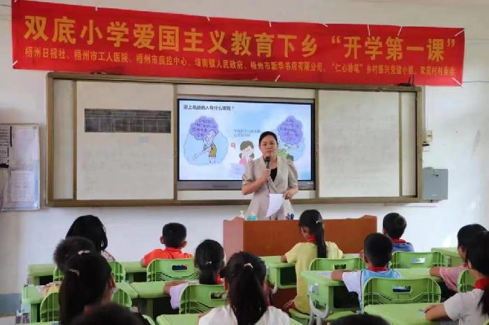 为持续抓好青少年毒品预防教育工作,增强学生识毒、防毒、拒毒意识和能力,8月29日,在秋学期开学之际,埌南镇党委、政府联合梧州日报社共同到埌南镇双底小学开展“开学第一课”——“健康人生,绿色无毒”为主题的禁毒知识直播课。