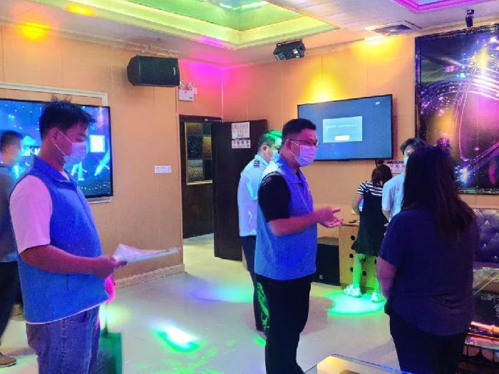 在KTV、宾馆、超市等公共复杂场所,网格员们还仔细检查了重要场所疫情防控措施落实情况,指导公共复杂场所落实人员正确佩戴口罩、查验健康码、行程码、测量体温等防控措施。