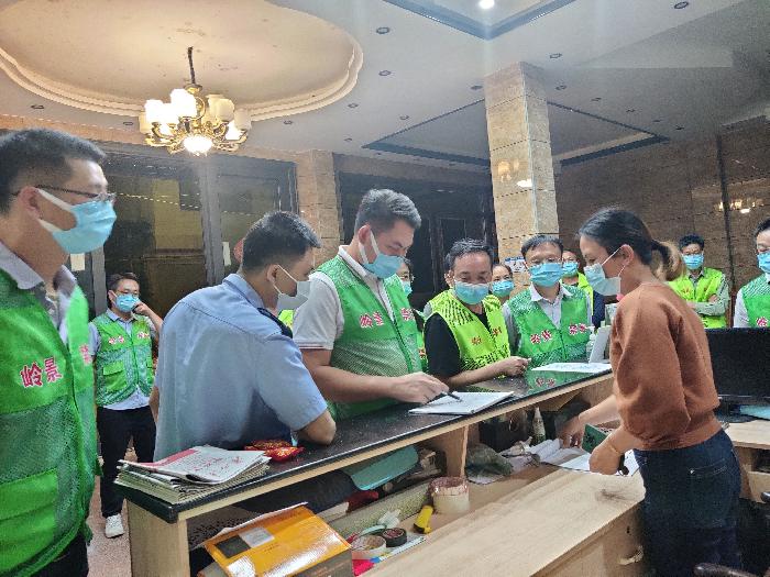 为做好易涉毒场所行业安全防范工作,提高从业人员识毒拒毒防毒意识,10月18日晚上10点,岭景镇联合派出所,组织民警、辅警、禁毒社工、综治办工作人员及治安联防队员等力量,对辖内易涉毒行业场所开展排查整治工作。行动中,各方力量协调配合,对辖区宾馆、KTV、酒吧等娱乐场所经营法人及从业人员开展“突击式”排查,检查娱乐场所、旅馆、加油站等场所是否规范张贴禁毒宣传标语,海报、场所禁毒巡查制度是否落实等情况。