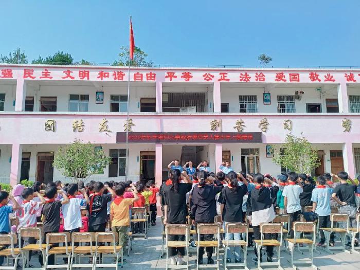同心镇党委副书记、镇长覃远斌带领全体师生进行禁毒宣誓