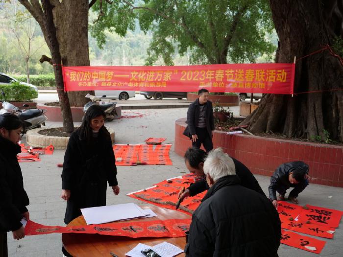 为深入贯彻落实党的二十大精神,1月17日大黎镇党委、政府组织镇便民服务中心、综治办等镇直单位开展新时代文明实践志愿服务活动,活动的主要内容为“我的中国梦——文化进万家”送春联,此次活动还邀请了藤县博物馆和大黎镇诗社等单位和民间团体参加。