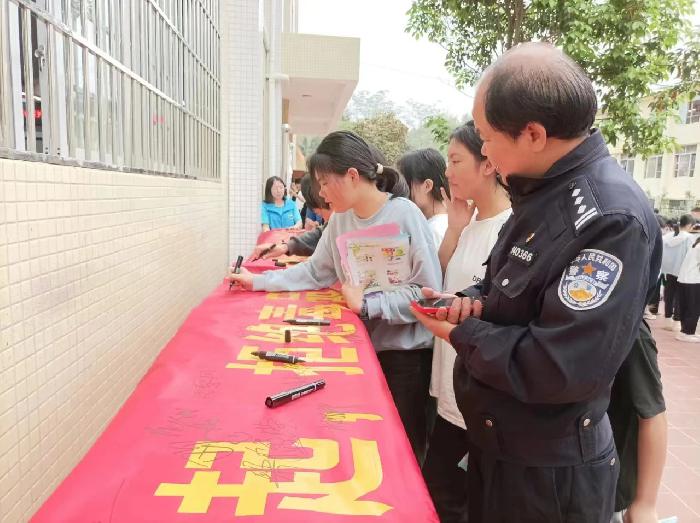 最后,在活动现场开展“从我做起,拒绝毒品,反对邪教,争当守法好公民”主题签名活动,现场师生们积极参与签名,并表示要从自身做起,拒绝毒品,反对邪教,远离违法犯罪,争当守法好公民。