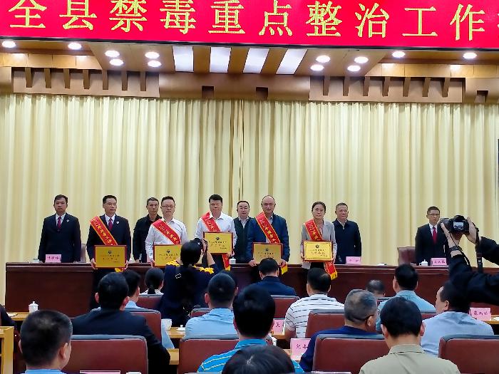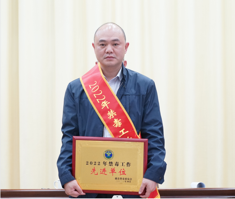上图为镇党委书记杨诚出席2023年全县禁毒重点整治工作推进会并上台领奖