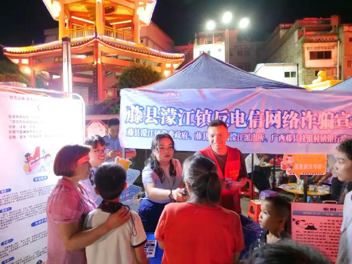 6月9日,濛江镇在水上舞台开展“水乡梦·濛江情”特色水上实景演出——广西非物质文化遗产牛歌戏专场演出活动。同时结合演出活动,镇政府组织濛江派出所、广西藤县桂银村镇银行濛江支行、镇综治中心组成志愿服务队,开展反电信网络诈骗宣传活动。