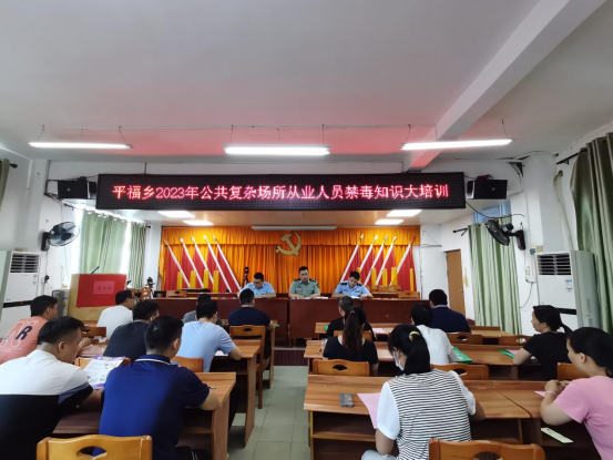 为进一步提高辖区内涉毒重点物品企业、公共复杂场所管理,8月2日下午,平福乡开展公共复杂场所从业人员禁毒知识大培训。乡党委政法委员、武装部长刘福新主持会议。平福派出所、平福市场监督管理所、乡综治中心、乡内公共复杂场所从业人员参加培训。