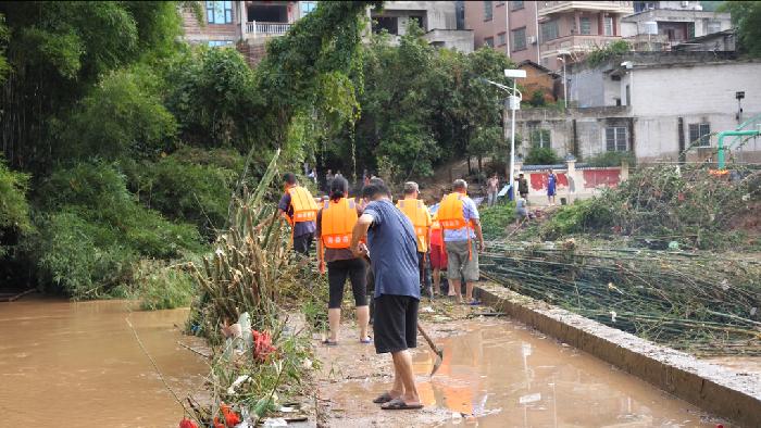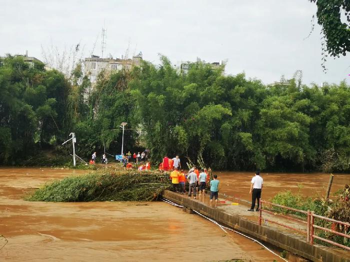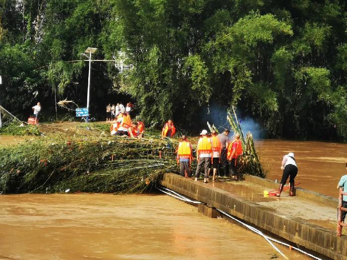 9月4日上午,接到桥梁阻断的汛情后,镇党委、政府主要领导迅速成立工作组并第一时间赶赴现场,疏导堵塞车辆,安抚受阻群众情绪,同时安排工作人员进行清障工作,根据“先通保畅”原则,用电锯、锄头、铲子等工具砍断竹子、清除桥面淤泥,经过一个多小时的奋战,麦地桥桥面的竹子被全部清理完毕,桥面恢复正常。