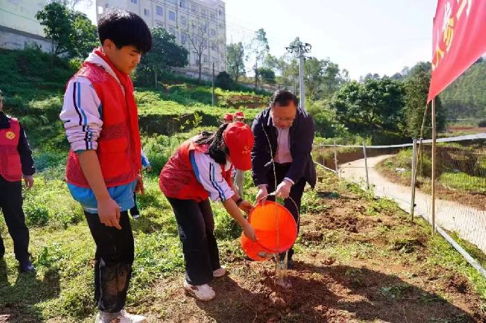 春回大地催新绿,植树护绿正当时。3月12日,同心镇党委政府、团委联合同心中学开展“绿色人生”植树暨学雷锋主题志愿服务活动。镇党委书记蒙文森、同心镇初级中学党支部书记韦雄振、党员干部、学生志愿者参加活动,以实际行动践行绿色发展理念,助力乡村振兴。
