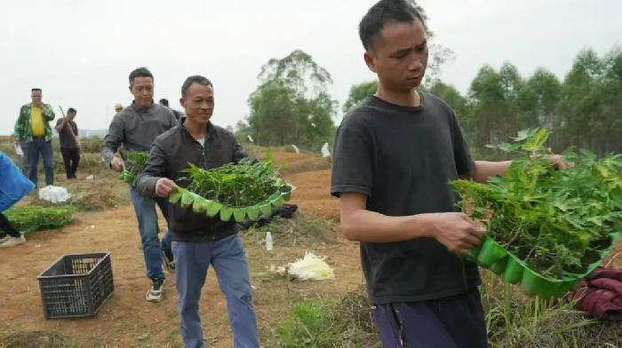 资料图为农户领取木瓜苗。朱志宁 摄