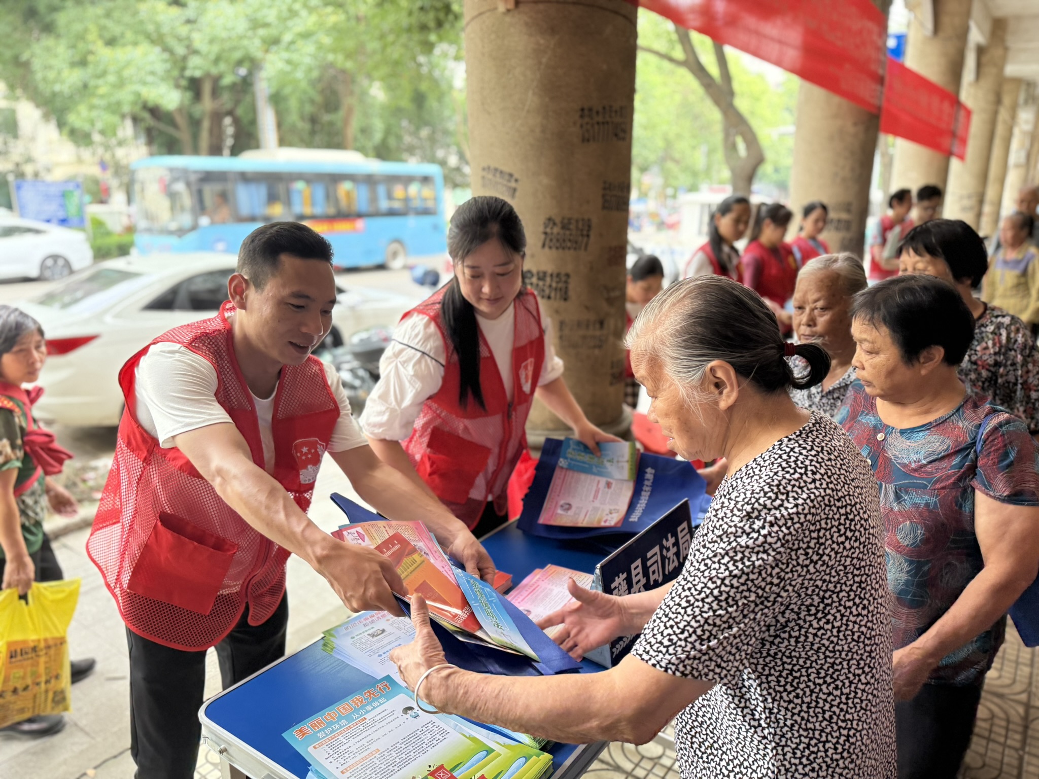 活动现场,县司法局“蒲公英”普法团队通过悬挂横幅、提供法律咨询、发放宣传资料等方式宣传环境保护方面的法律法规,志愿者们热情地为过往群众提供法律咨询服务,耐心解答群众法律问题,并普及日常生活中的环保小贴士,鼓励群众从生活点滴小事做起,增强自身的环境保护意识,并向过往群众发放了民法典、环境保护法、法律援助、禁毒、扫黑除恶等法治宣传资料,进一步提高群众法治意识。