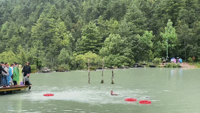 7月26日下午3时许,云南丽江玉龙雪山蓝月谷景区内,薄雾缭绕的湖面突然传来呼救声,打破了山水间的宁静——一对正在蜜月旅行的年轻夫妇不慎落水,在离岸约30米处挣扎,情况危急。此时,来自广西藤县天平镇石炉村的村民关荣生正与妻子在景区游览,听到前方人群传来焦急呼喊“有会游泳的吗?快来救命!”危急关头,这位38岁的藤县汉子没有丝毫犹豫,瞬间冲向湖边。