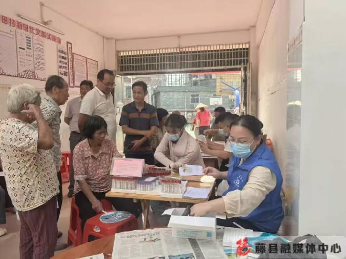 “医生,我这老腰最近总疼,您给看看咋回事?”10月11日一大早,塘步镇沙田村委门前的空地上,早已挤满了等候义诊的村民。梧州市中医院、藤县中医院和塘步镇卫生院的16名医护人员刚摆好器械,莫大娘凑上前问起了自己的情况。