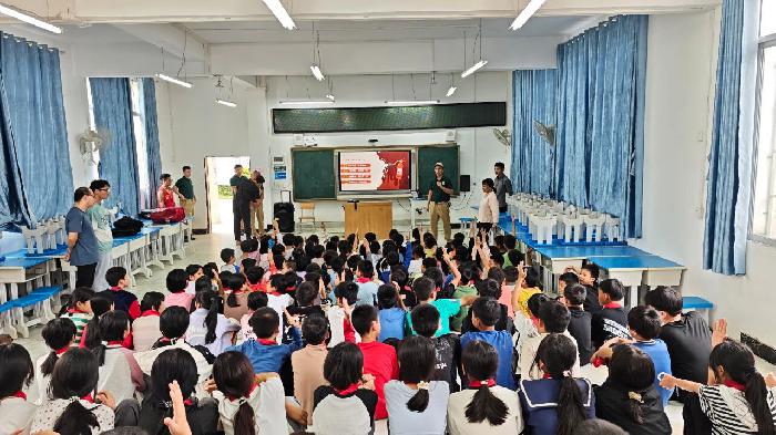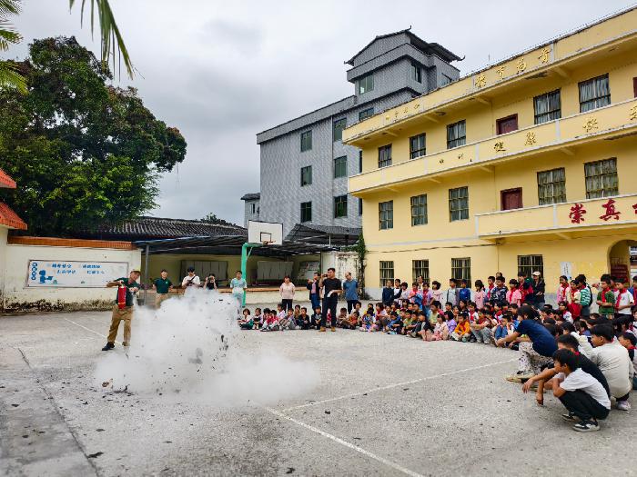 2025年11月9日是我国第34个全国消防日,今年的主题是“全民消防、生命至上——安全用火用电”。为积极响应“消防宣传月”活动号召,进一步提升校园消防安全管理能力,增强广大师生的应急避险与自救互救意识,11月7日,天平镇政府、新马村、新马驻村工作队联合广西安全生产科学研究院,在新马开明中学和新马小学开展消防安全宣传活动。