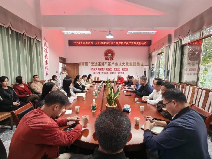 专题交流座谈会上,三方党支部围绕党建引领乡村振兴核心议题,结合各自职能定位开展深度研讨。藤县自然资源局第一党支部立足主责主业,讲解埌南镇全域土地项目推进情况,并针对土地流转规划衔接、耕地保护刚性落实、产业项目用地审批保障等关键环节开展政策宣讲与精准解读,为项目合规有序推进提供专业化指导;中国农业发展银行藤县支行党支部紧扣金融服务“三农”核心职责,系统介绍农业产业信贷支持政策、融资服务流程及相关配套举措;云边茶海党支部详细汇报项目建设进展、产业发展规划及当前面临的用地、融资等核心需求。三方立足自身优势,就优化土地流转机制、强化农业产业金融赋能、深化村企共建助农增收等重点议题达成共识,共同为破解项目发展瓶颈、拓宽农户增收渠道建言献策。
