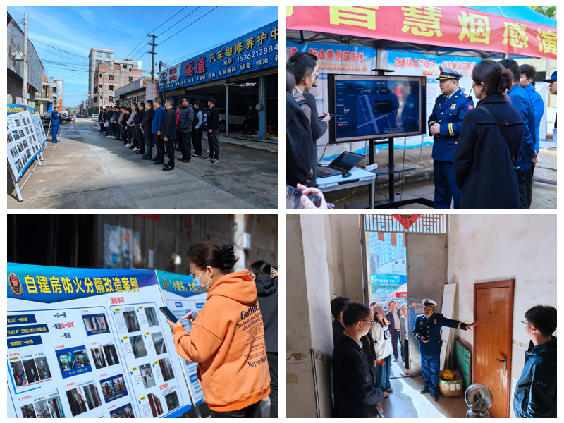 理论学习后,大队宣讲人员带领参会人员开展现场排查示范教学;其余人员通过参观消防安全展板巩固学习成果。为加强技防科普,移动公司技术人员还演示了智能烟感、远程监控系统等智慧消防设备的应用。